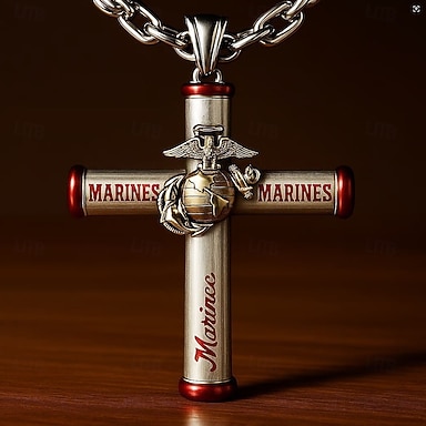 Collar con cruz militar estadounidense para hombre, colgante conmemorativo patriótico del Cuerpo de Marines de EE. UU., cruz grabada con la bandera estadounidense para conmemorar el Día de los Caídos,