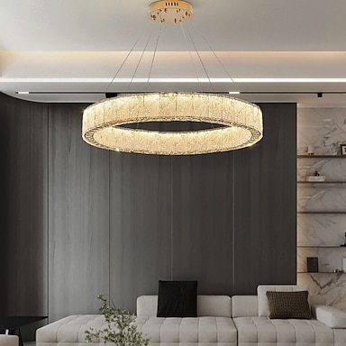 Diseño redondo de círculo de luz colgante led, lámpara de araña led de cristal moderna de 60 cm para sala de estar, diseño creativo de lujo, lámpara de oro, lámparas colgantes de isla de cocina