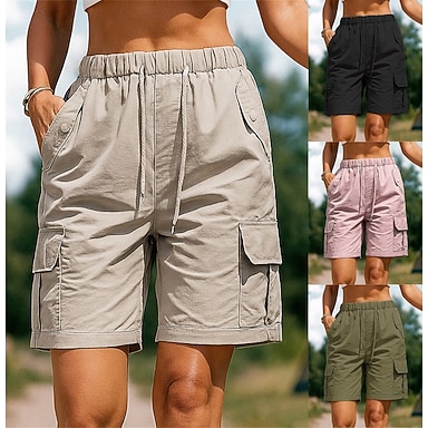 Mujer Pantalones cortos de carga Pantalones cortos de senderismo Verano Primavera Al aire libre Ajuste regular Impermeable Secado rápido Ligero Transpirable Bermudas Correa Cintura elástica Negro Rosa