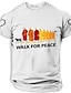 Camiseta negra de manga corta con cuello redondo y texto de la Caminata por la Paz para hombres, con huella de pata de monje, silueta de perro Aloka, atención plena budista, ropa informal de verano en