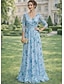 Corte Trompeta Sirena Hasta el Suelo Vestido Invitada Boda Vestido formal Vestido de noche Vestido de Madrina Manga Larga Hombros Caídos Elegante Invitado a la boda Noche formal Fiesta de Boda Encaje