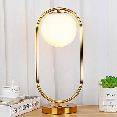 Lámpara de mesa LED con enchufe en metal dorado, globo de cristal blanco, lámpara de mesa para dormitorio 110-240v