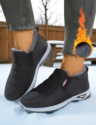 Zapatos de invierno sin cordones burdeos para mujer con ribete de piel sintética, botines acogedores para clima frío, perfectos para Navidad, compras navideñas y días informales.