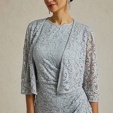 Mujer Longitud del té Vestido tubo Vestido con chaqueta Elegante cóctel Vestidos semi formales Boda Fiesta Invitado a la boda Floral Manga Larga Cuello Barco Morado Primavera Otoño Invierno