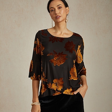 Mujer Blusa Tops elegantes Floral Elegante Casual Manga 3/4 Mangas anchas Cuello Barco Tops regulares Diario Invitado a la boda Marrón Otoño Invierno
