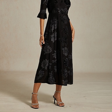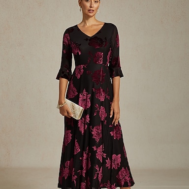 Mujer Vestido Midi Vestido de terciopelo Elegante Invitado a la boda Fiesta de Cóctel Cita Ajuste regular Floral Media Manga Escote en Pico Marrón Primavera Otoño Invierno