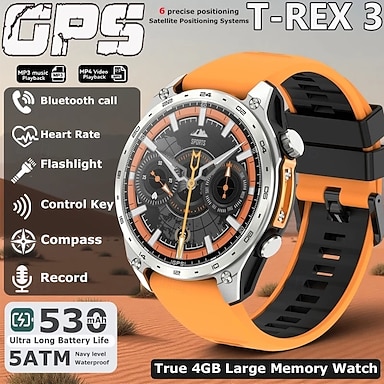 Reloj inteligente para hombre Amolde HD300 Pro con GPS, seguimiento sin conexión, mapa, 4 GB de memoria, grabadora, linterna, deportes al aire libre, barómetro, altímetro y brújula.