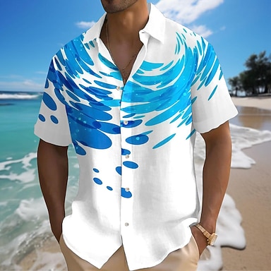 Hombre Oceano Olas Abotonar la camisa Manga Corta Hawaiano Casual Complejo Casual Exterior Festivos Verano Primavera Cuello Vuelto Estampado Blanco
