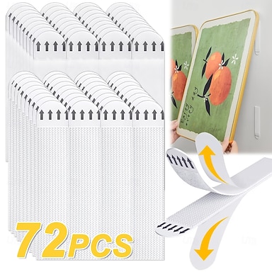 72 tiras adhesivas multiusos de poliamida para colgar cuadros, diseño sin taladro, removibles por ambos lados, fuerte fijación adhesiva, duraderas e impermeables, ideales para marcos de fotos de