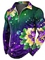 Carnaval Hombre Floral Camisetas polo con cremallera Manga Larga Camisas de polo Diseño Casual Exterior Ropa Cotidiana Impresión 3D Primavera Otoño Morado