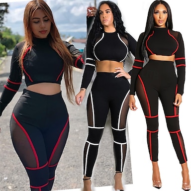 Mujer Conjunto de yoga 2 Piezas Bloque de color Trajes de Yoga Verano Primavera Blanco Rojo Entrenamiento de gimnasio Aptitud física Yoga Alta cintura Suave Transpirable Manga Larga Deporte Ropa de