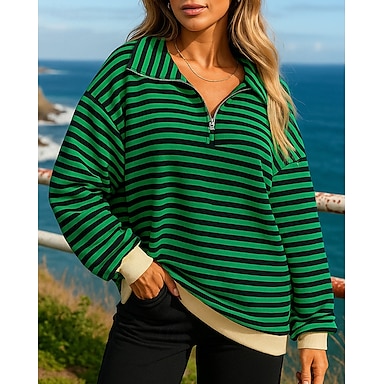 Mujer Navidad Rayas Sudadera tipo jersey Tops casuales Otoño Cremallera de un cuarto Moda Manga Larga Ropa Deportiva Resistente al Viento Senderismo Corriendo Rutina de ejercicio Azul Piscina Rosa
