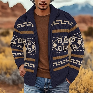 Hombre Jersey Jacquard Chaqueta de Punto Suéter Fair Isle Jersey con cremallera Chaqueta de punto Tejer Cremallera Tribal Cuello enrollado Moda Clásico Diario Exterior Ropa hombro caído Otoño invierno