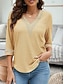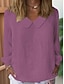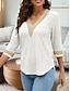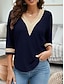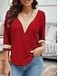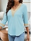 Mujer Camisa de manga corta Camisa casual Blusa Color sólido Elegante Vacaciones Casual Manga 3/4 Escote en Pico Tops regulares Trabajo Playa Festivos Azul Piscina Negro Blanco Rojo Morado Verano