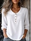 Mujer Camisa de manga corta Camisa casual Blusa Encaje Botones Color sólido Vacaciones Elegante Casual Manga Larga Cuello Vuelto Tops regulares Diario Playa Festivos Blanco Verano Primavera Otoño