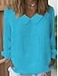 Mujer Camisa de manga corta Camisa de verano Camisa casual Blusa Retazos Ojal Color sólido Vacaciones Elegante Básico Manga 3/4 Escote en Pico Tops regulares Diario Exterior Festivos Azul Piscina