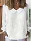 Mujer Camisa Camisas de algodón y lino Camisa casual Abotonar la camisa Botones Color sólido Plano Vacaciones Moda Diario Collar de Peter Pan Tops regulares Ropa de calle Playa Festivos Naranja