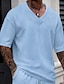 Hombre Camiseta de punto Camiseta superior Camiseta de mezcla de algodón Manga Corta Escote en Pico Verano Color sólido Moda Design Básico De Punto Vacaciones Calle Casual Amarillo Beige Azul Claro