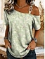 Mujer Camiseta Asimétrico Graphic Geométrico Vintage Tropical Hawaiano Manga Corta Un Hombro Cuello asimétrico Tops regulares Diario Deportes Noche Blanco Rosa Verde Trébol Caqui Verano Primavera