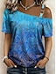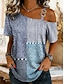 Mujer Camiseta Camiseta superior Estampado Asimétrico Graphic Abstracto Vintage Moda Elegante Manga Corta Un Hombro Hombros Caídos Cuello asimétrico Tops regulares Diario Noche Fin de semana Azul