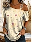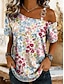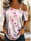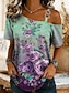 Mujer Camiseta Asimétrico Floral Graphic Vintage Tropical Hawaiano Manga Corta Un Hombro Cuello asimétrico Tops regulares Diario Deportes Noche Amarillo Rosa Morado Verde Trébol Verano Primavera