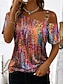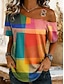 Mujer Camiseta Estampado Graphic Geométrico Vintage Tropical Hawaiano Manga Corta Hombros Caídos Cuello asimétrico Tops regulares Diario Deportes Noche Azul Piscina Negro Rosa Naranja Verano Primavera
