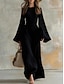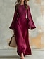 Mujer Vestido Midi Algodón Compuesto Vestido de cambio Vestido Kaftan Vestido informal Moda Clásico Moderno Exterior Vacaciones Festivos Ajuste regular Plano Manga Larga Escote en Pico Negro Vino