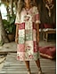 Vestido Midi de Mujer Cuello en V de Manga Larga Kaftán Ligero Corte Suelto Vestido A Línea Casual Boho Fiesta Para Salir Gráfico Floral Manga Larga Cuello en V Gris Verde Rosa Púrpura Marfil