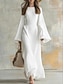 Mujer Vestido maxi Vestidos de lino y algodón Vestido de cambio Vestido Kaftan Vestido informal Moda Moderno Diario Vacaciones Noche Holgado Plano Manga Larga Cuello Barco Blanco Verano Primavera