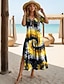 Mujer Vestido largo maxi Vestido bohemio Vestido informal Vestido de una línea Vestido Estampado Vintage Exterior Vacaciones Fin de semana Holgado Graphic Manga Corta Escote en Pico Negro Amarillo