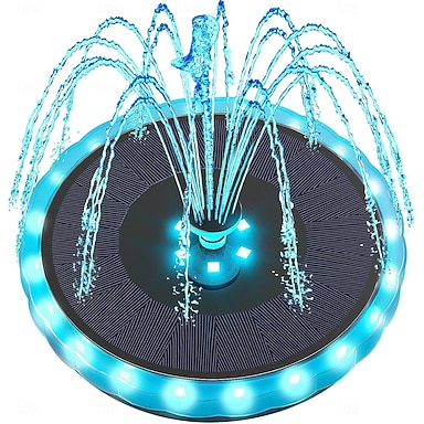 Bomba de fuente alimentada por energía solar para bebedero de pájaros, jardín, estanque &Decoración exterior, luces LED de colores, panel de vidrio mejorado, pequeña fuente de agua para pecera. &