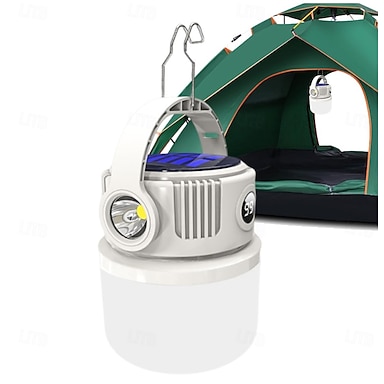 Luces solares para acampar al aire libre, portátiles con carga dual (solar/tipo C), luz potente, material ABS