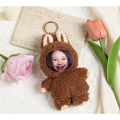 Llavero de peluche personalizado con cara divertida, llavero de conejito de Pascua con foto personalizada, regalo con orejas de conejo, dije para bolso suave, accesorio para mochila, regalo para niños, novia, damas de honor.