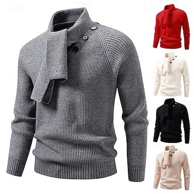 Hombre Pulóveres Suéter de punto Estriado Tejer Tops regulares Convertible De Punto Plano Chal Prendas de punto Moderno Casual Ropa Cotidiana Ropa Otoño Invierno Negro Blanco M L XL