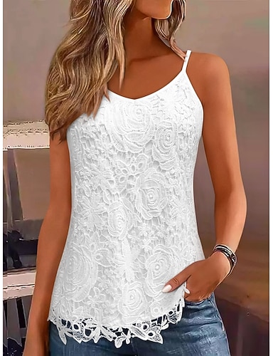 Mujer Tops de encaje Encaje Retazos Plano Elegante Moda Clásico Sin Mangas Correas Tops regulares Diario Noche Fin de semana Azul Piscina Blanco Verano Primavera