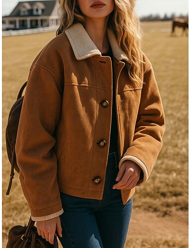 Mujer Chaqueta de Invierno Chaqueta casual Cómodo Transpirable Botones Casual Plano Vacaciones Calle Casual Ropa Cotidiana Botonadura Simple Corto Cuello Vuelto Holgado Manga Larga Ropa de calle Café