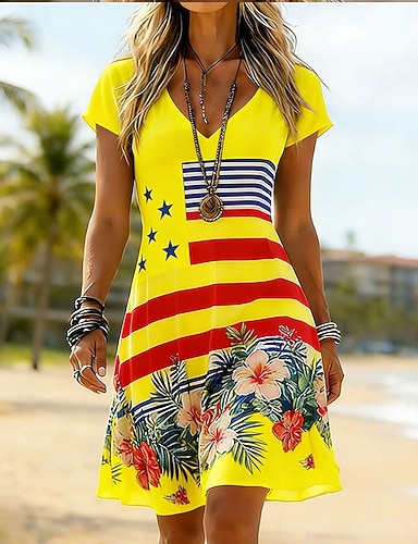 Día de la Independencia Aniversario Americano Patrón Camiseta para Mujer Gráfica Bandera Vintage Estilosa Clásica de Manga Corta Cuello Redondo Impresión Diario Fin de Semana Blanca Verano Primavera