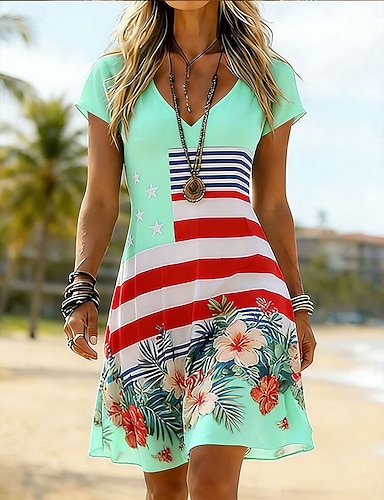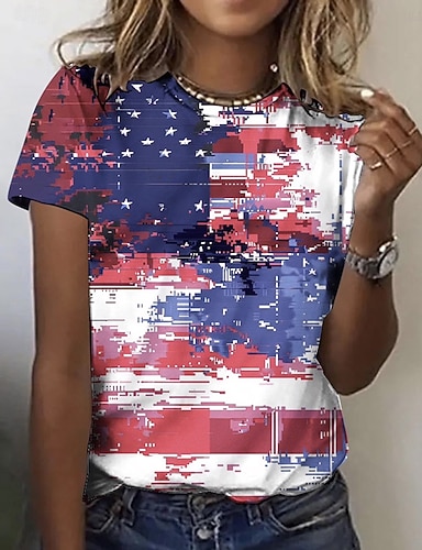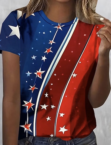 Día de la Independencia Aniversario Americano Patrón Camiseta para Mujer Gráfica Letra Bandera Nacional Vintage Estilosa Clásica de Manga Corta Cuello Redondo Impresión Diario Fin de Semana Azul Rojo