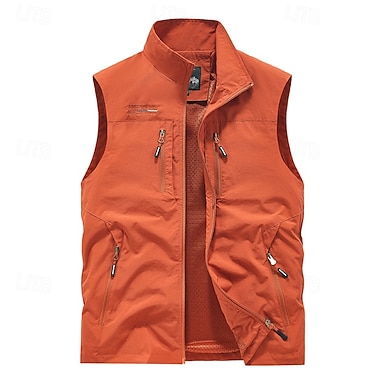 Hombre Chaleco al aire libre Chaleco Chaleco de pesca Exterior Diario Moda Casual Primavera Otoño Bolsillo Poliéster Cómodo Plano Cremallera Escote Chino Ajuste regular Negro Naranja Caqui Verde