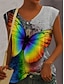 Mujer Camisa Botones Estampado Animal Mariposa Elegante Moderno Manga Larga Escote en Pico Tops regulares Diario Festivos Blanco Gris Verano