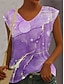 Mujer Camiseta Estampado Botones del pecho Impresión de mármol Elegante Moderno Casual Manga Corta Henley Tops regulares Diario Azul Piscina Amarillo Morado Verde Trébol Verano Primavera