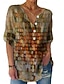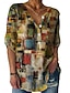 Mujer Camiseta Henley Shirt Botones Estampado Floral Cosecha Étnico Diario Básico Manga 3/4 Escote en Pico Tops regulares Festivos Fin de semana Rojo Morado Verde Trébol Caqui Gris Otoño invierno