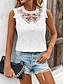 Mujer Camiseta sin mangas Camiseta de encaje Encaje Retazos Plano Moda Elegante Sensual Sin Mangas Escote en Pico Tops regulares Diario Noche Fin de semana Blanco Verano Primavera