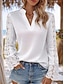 Mujer Blusa Encaje Color sólido Elegante Básico Casual Manga Larga Escote en Pico Tops regulares Diario Blanco Verano Primavera Otoño