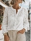 Blusas Elegantes Blancas de Encaje para Mujer Blusa Ojal Estilosa Moderna de Color Sólido Botones Ojal de Manga 3/4 Escote en V Diario Romántico Tallas Pequeñas Ropa de Verano Vacaciones Blancas