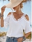 Mujer Blusa Encaje Color sólido Elegante Casual Manga Corta Con Tirantes Tops regulares Diario Blanco Verano Primavera