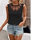 Mujer Camiseta sin mangas Camiseta de encaje Encaje Retazos Plano Moda Elegante Clásico Sin Mangas Cuello Barco Tops regulares Diario Noche Fin de semana Negro Blanco Rosa Rosa Brillante Verano