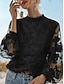 Blusas Elegantes Blancas de Encaje para Mujer Blusa Ojal Estilosa Moderna de Encaje de Manga Larga Ropa Regular Trabajo Diario Romántico Tallas Pequeñas Ropa de Verano Vacaciones Negro Blanco