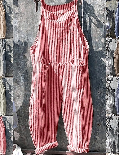 Mujer Normal Mono Activo A Rayas Sin Mangas Escote en U Bolsillo Diario Vacaciones Ajuste regular Azul Piscina Amarillo Rosa Otoño