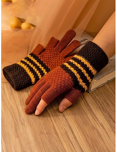 Guantes de poliéster de punto para pantalla táctil para hombre: diseño de dos dedos, disponibles en varios colores, perfectos para actividades de invierno y al aire libre.
